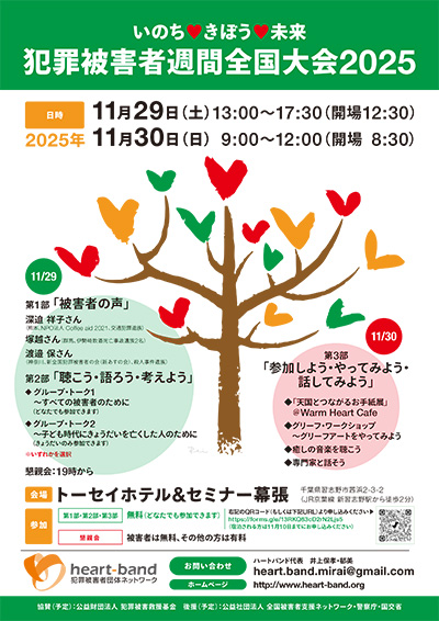 名称:犯罪被害者週間全国大会2024 ~いのち・きぼう・未来~主催:犯罪被害者団体ネットワーク (ハートバンド)