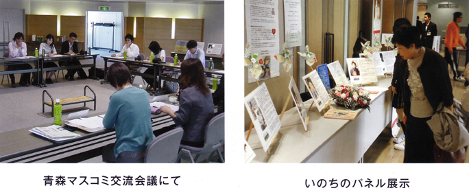 青森県内で推進している「命を大切にする心を育む県民運動推進会議」や市民活動展に参画し、青森県内の被害者遺族のメッセージ「いのちのパネル」を県内各公共施設、各学校等で展示、今後は、被害者支援などのキャンペーン等で展示させていただきたいと考えている。 県内各学校、各企業、交通安全協会などで、講演している。 |